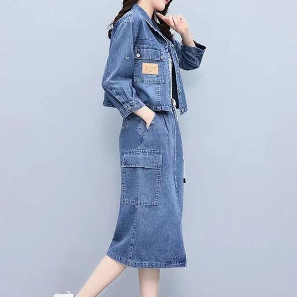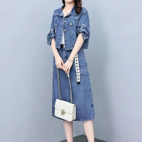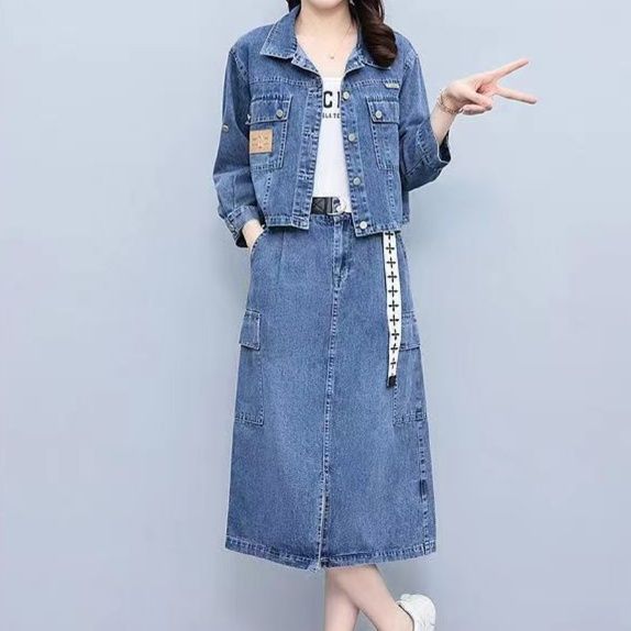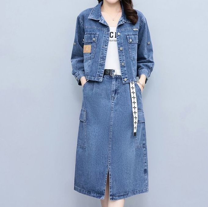 ジャケットとスカートの組み合わせで着回しやすい洗練されたスタイリング