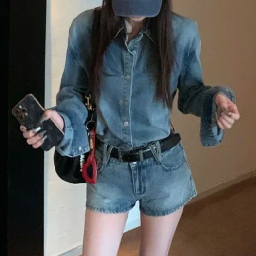 デニムセットアップならではの統一感が、コーディネートの手間を省きながらもおしゃれな装いを実現します。