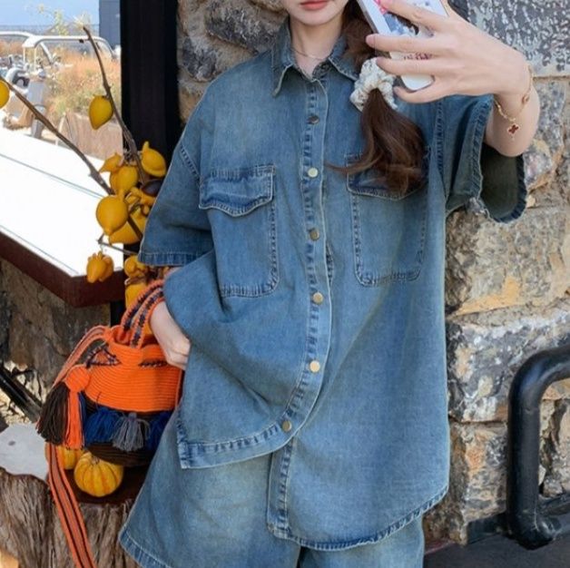ゆったりとしたデニム素材で快適な着心地とカジュアルな雰囲気を演出