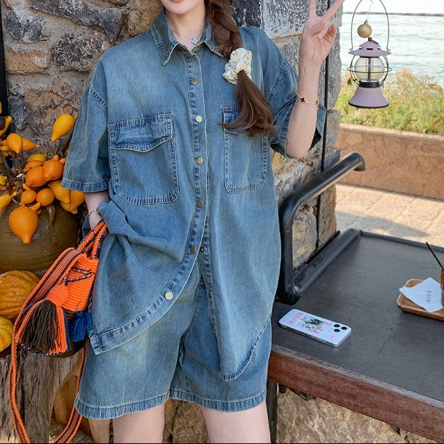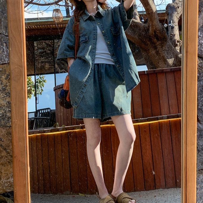 海辺のカフェやお散歩など、夏の思い出作りに寄り添うデニムセットアップです。